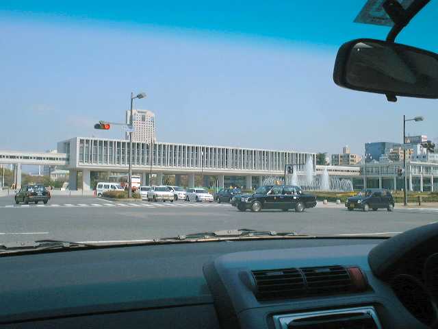 | We have arrive at Peace Park, our primary destination of this trip to Hiroshima. This was taking from across the street when we first got there. That elevated building in the middle there is part of the Peace Park Museum. |