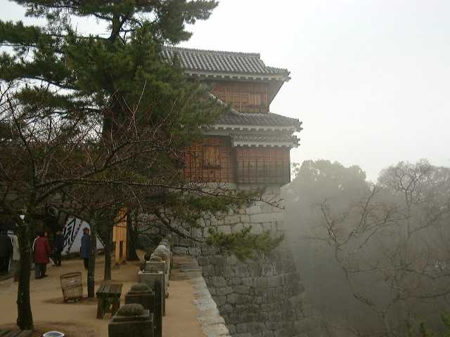 | The mist rising from the forest below with a wooden castle tower perched atop the strong stone wall symbolizes what a Japanese castle may of looked like many years ago. This is one of my favorite photos from this set and it turned out nicely. |