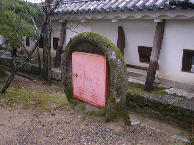 | I found it curious how the Japanese have built these circle post around the castle and made to look like part of the castle itself. These were seen all around the castle and hold fire hoses in case of a fire, due in part that most the castle towers themselves are made up of wood. |