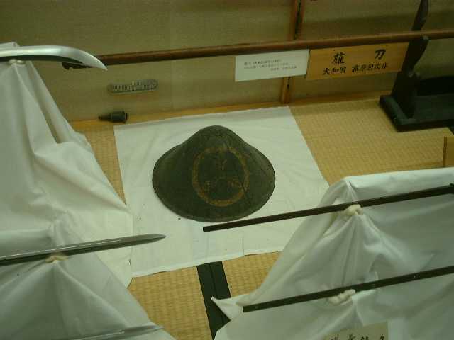 Seen here is a hat most likely worn by a foot bushi of some sort. The ruling family symbol can be seen printed onto the hat.