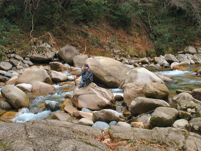 Pic of me out among the big boulders in an Okayama river.