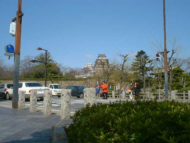 At the outer wall to Himeji castle. The main tower can been seen off in the distance.