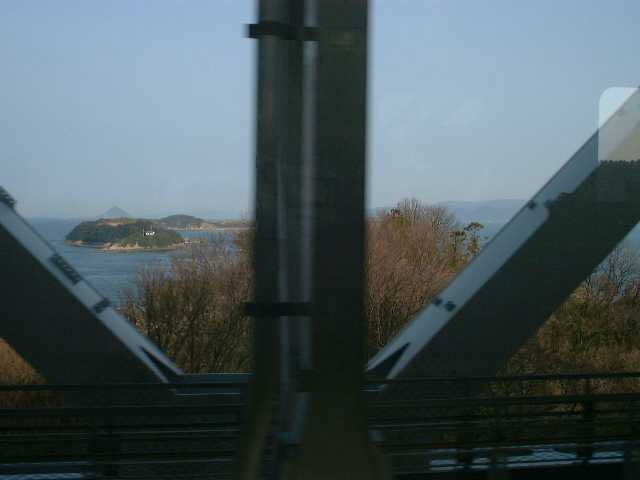 | Ah yes.. a better picture without the flash messing it all up. Here to you can see some of the island out there in the inland sea between Honshu and Shikoku. People have actually built houses out there on some of them. Which just goes to show you how crowded it can be at times in Japan. |