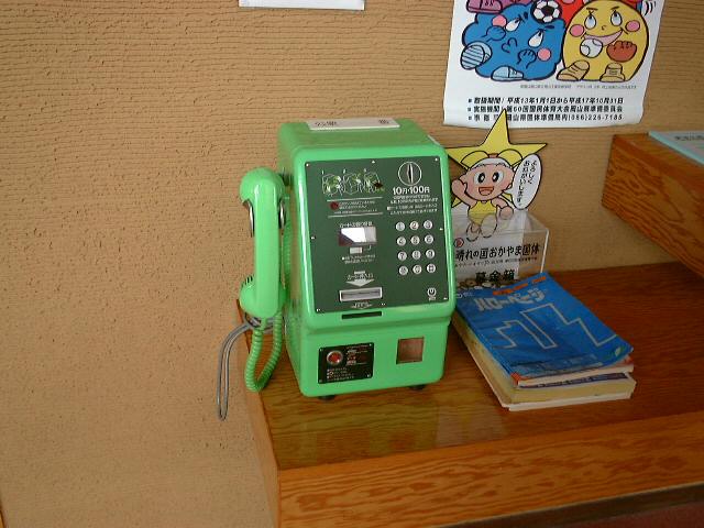 | With the cell phone these things get used less and less. A Japanese GREEN pay phone. They also have other colors as well, but this one and the grey ISDN ones are mostly all that remain. Depending on the color of the phone tells you the services that are available. I think green is general use. Notice the little slot for calling cards, like an ATM machine just insert you card and begin dialing. |